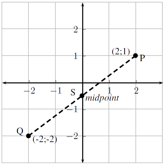 Then the co-ordinates of the midpoint (S) of the line between point P with co-ordinates (2;1) and point Q with co-ordinates (–2;–2) is: