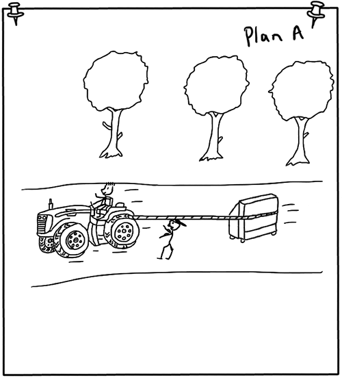 My dad was still at work, so it’d be easy getting the tractor without my mom asking too many questions. William quickly scribbled down the second plan, folded it up and stuck it in his pocket before I could take a close look at it. We were in a hurry as we didn’t want someone else to get to the TV before us.