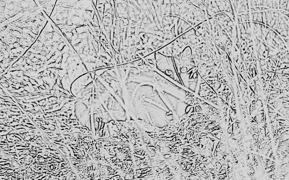 These two people were curious to me. Very curious. I did not understand what they were doing. Being so careless to let that much food lay on their deck so that a wild cat like me could just eat it up was curious to me. So I watched them more and more closely from the tall grass outside their Great Hole. I would see them come out of the Great Hole, then they went back in. Then I would find food on the deck. What was going on?